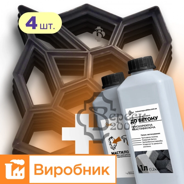 - Назва-товару Форми 4шт Садової доріжки 600х600х50 Камінці. мастило LC1 для форм і пластифікатор До Бетону 1л в подарунок. Верес-2007